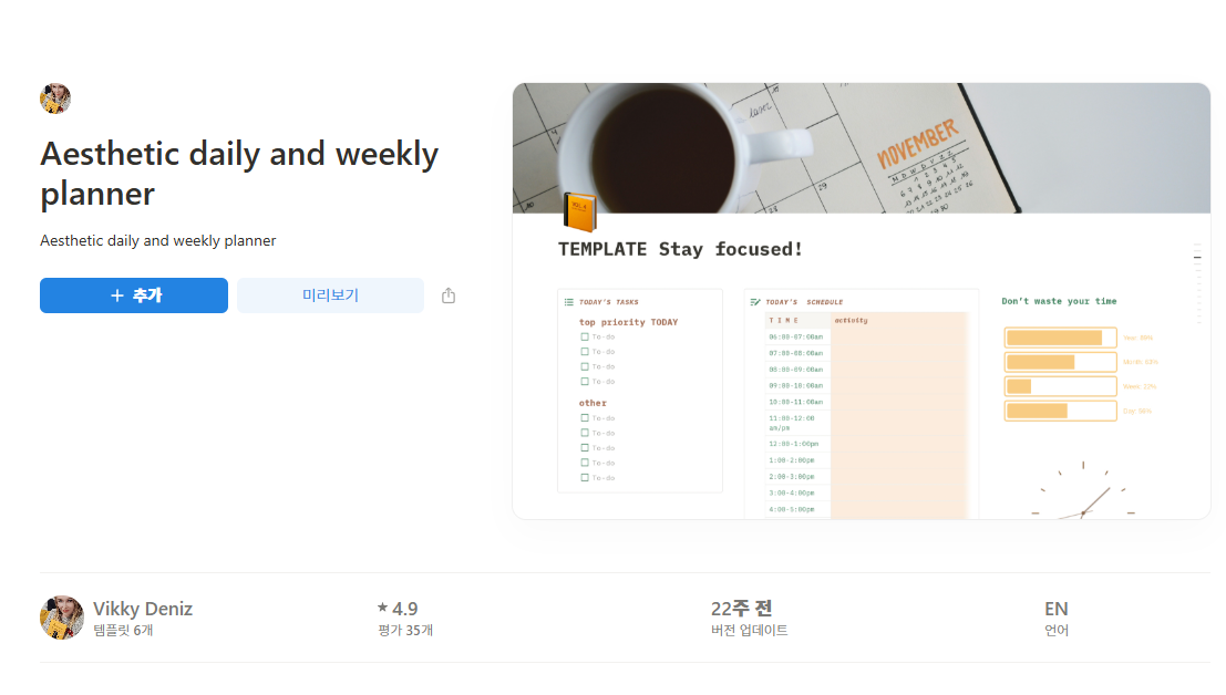 **템플릿(template)**은 쉽게 말해 미리 만들어진 노션 페이지의 틀이에요.