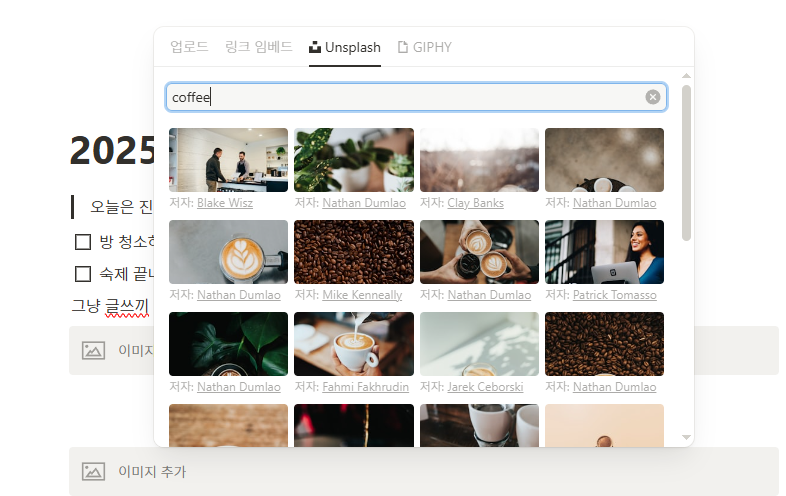 📸 저처럼 디자인 감각이 없더라도, Unsplash 검색으로 예쁜 이미지 바로 삽입 가능해서 너무 좋아요.